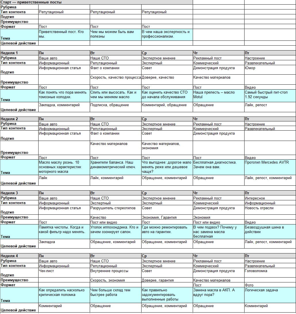 А чтобы было уже окончательно понятно, к чему нас должна привести эта формула, предлагаю посмотреть на контент-план, составленный на ее основе.